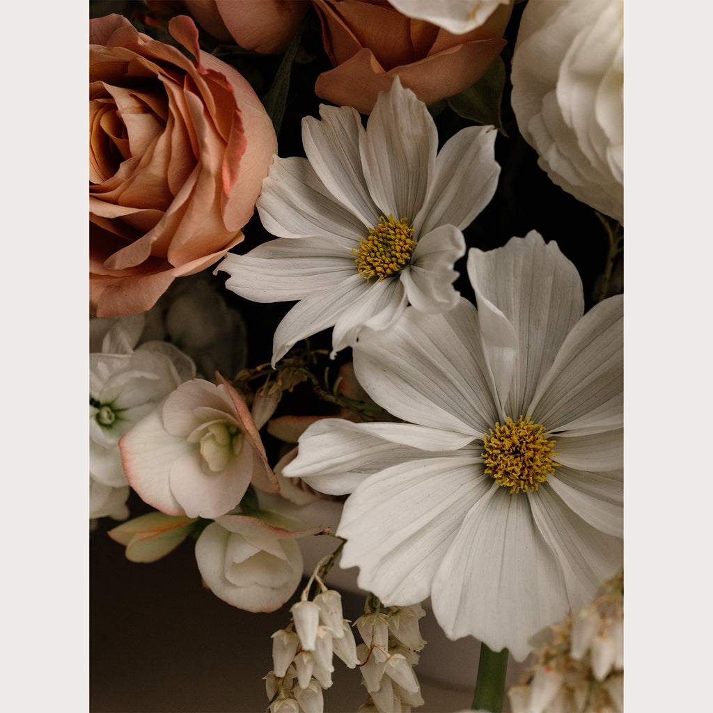 Inspired by Spring blooms such as ranunculus, cosmo, poppy, begonia, pieris, stock and tulips, layered in soft romantic textures. Love Letter is the combination of white and cream Spring florals with hints of soft and peachy pinks. Learn more about Alice de Crom here.